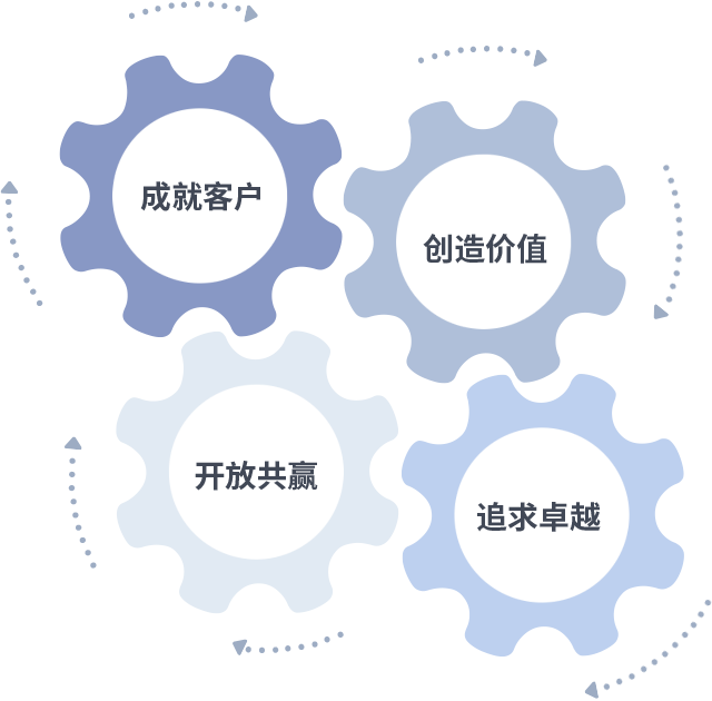 成就客户是一切决策的出发点,创造价值是衡量所有工作的标准,追求卓越是亚星会员yaxin222.com做事做人的态度,开放共赢是亚星会员yaxin222.com的格局也是最终的结果。价值观的齿轮环环相扣,推动着组织里的每个人不断向前。
